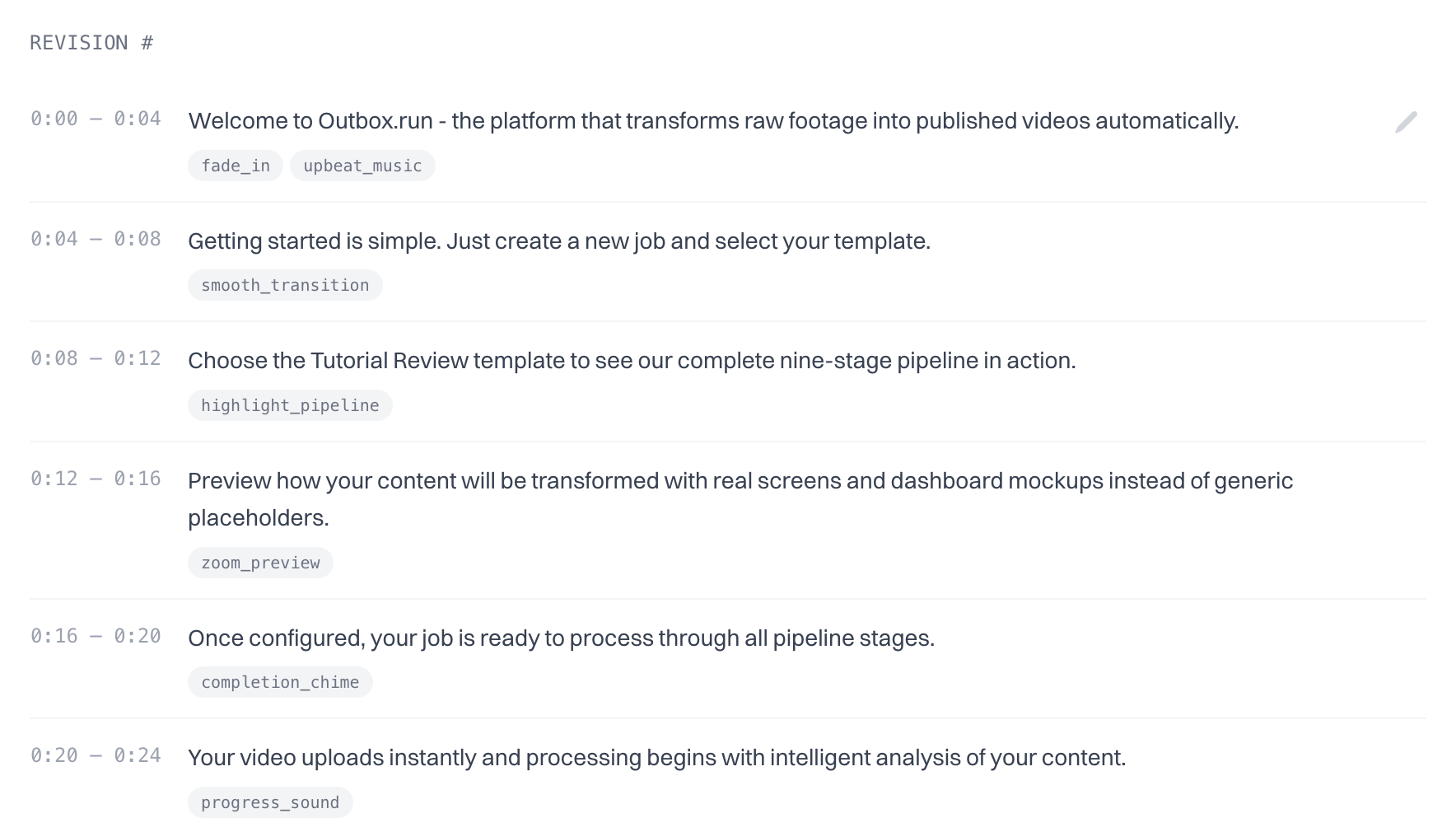 Best for recurring formats, changelog videos, and any workflow where you want the system to carry footage through every stage.